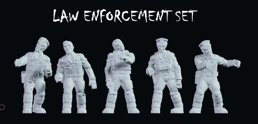 This was a Stretch Goal from the Halloween Horror (2023) Kickstarter- it features Law Enforcement Zombie stl files.